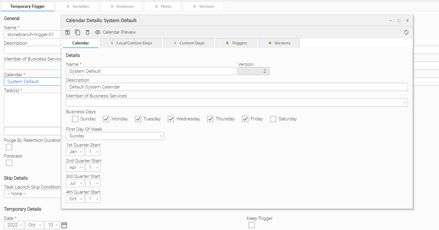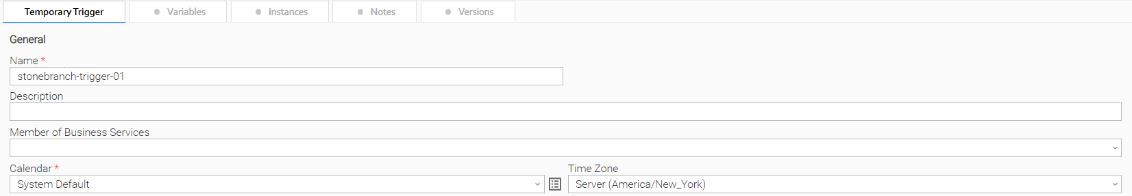 For example, every Trigger record contains a Calendar field whose value is the name of a Calendar selected from the drop-down list: