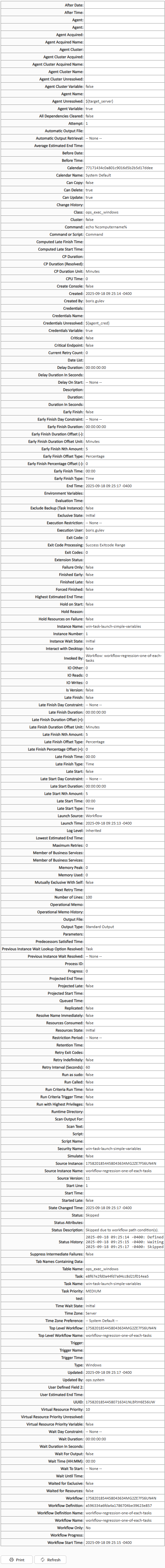 Operational Memo History | Task instance only; History of all Operational Memos for the task. |