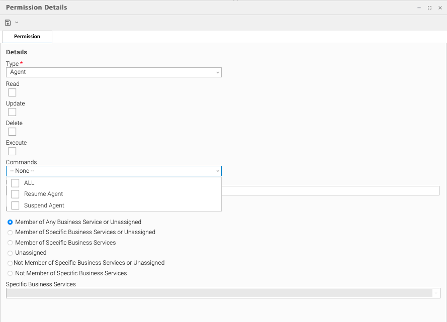 Conversely, since there is no role associated with Agents, permissions for a user to perform functions associated with Agents must be assigned specific Agent Permissions.