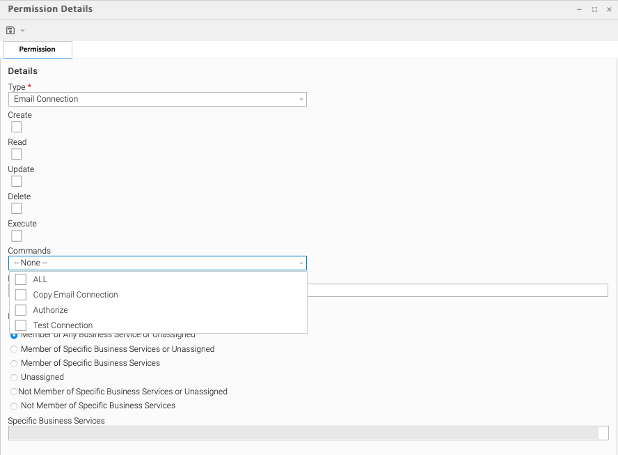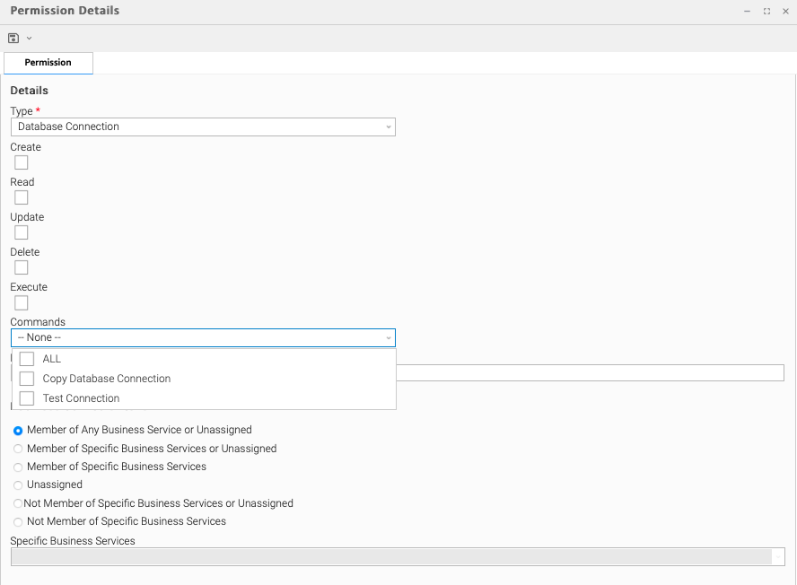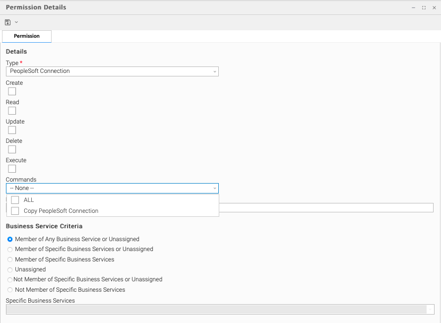 Read | Grants permission to read an SAP Connection. The Read check box will be checked automatically if the Business Service Visibility Restricted Universal Controller system property is false. |