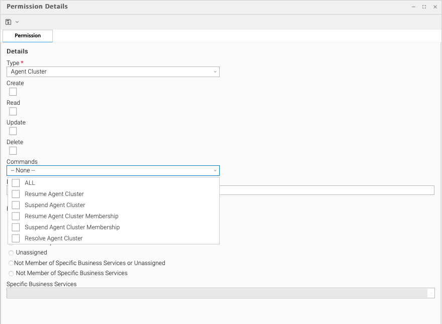 Some roles have permissions for specific functions that can be assigned individually. For example, a user that has been assigned the ops_agent_cluster_admin role has permission to perform all functions associated with Agent Clusters. A user that has not been assigned the ops_agent_cluster_admin role still can be given permission to perform individual functions associated with Agent Clusters via the Agent Cluster Permissions.
