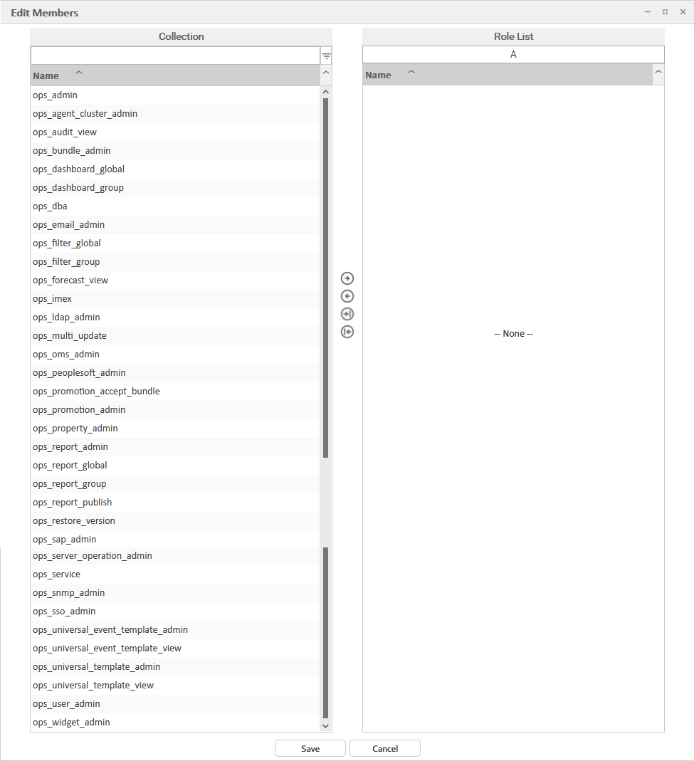 To unassign a Role to the User / Group, move the Role from the Roles window to the Collection window:
