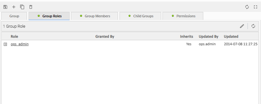 Step 2 | For a User, click the User Roles tab. A list of Roles assigned to the User displays. For a Group, click the Group Roles tab. A list of Roles assigned to the Group displays.