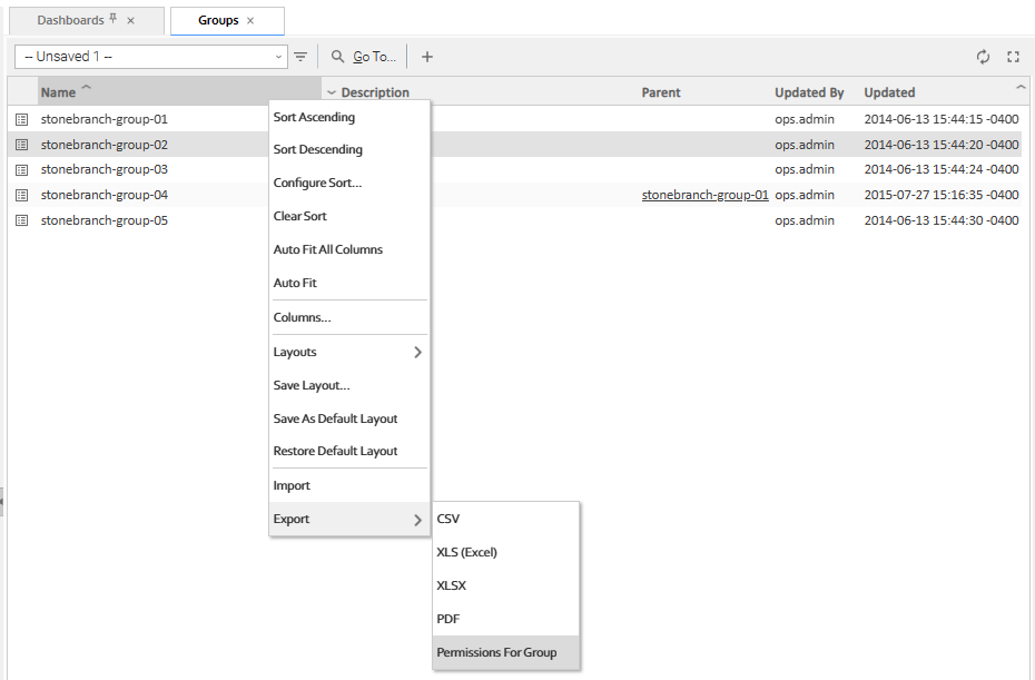 The Controller lets you export user groups and their permissions, which then can be imported into another Controller system. Only the permissions listed under the Permissions tab for each group will be exported.