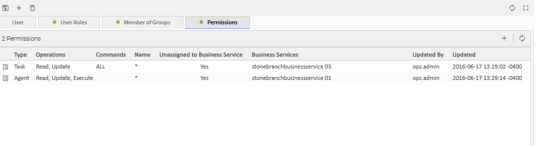 Permissions control user access to specific types of Controller records, such as task or trigger, and the types of functions that can be performed for those record types, such as create or delete.