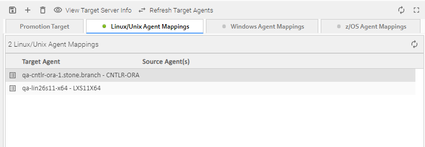 Open the Promotion Target record for which you have just refreshed Agents and click an Agent Mappings tab for which there are Agents on the target machine.
