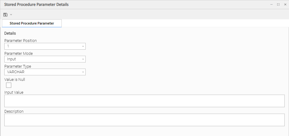 Click the New button to display Stored Procedures Parameter Details for a new parameter.