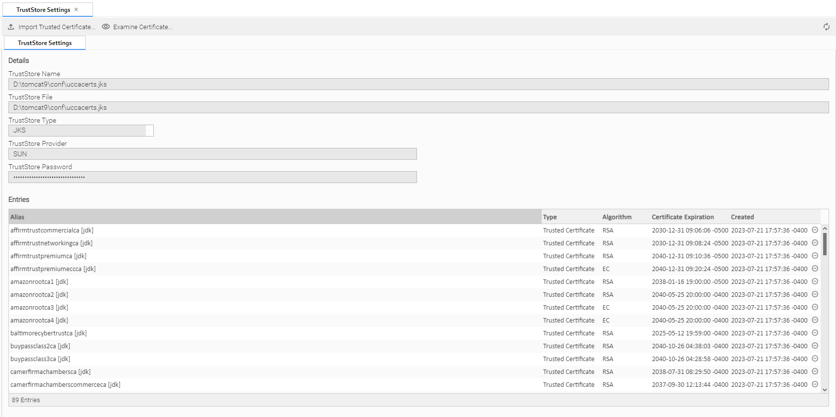 TrustStore Settings, which allow you to manage the default TrustStore, are available through the user interface.