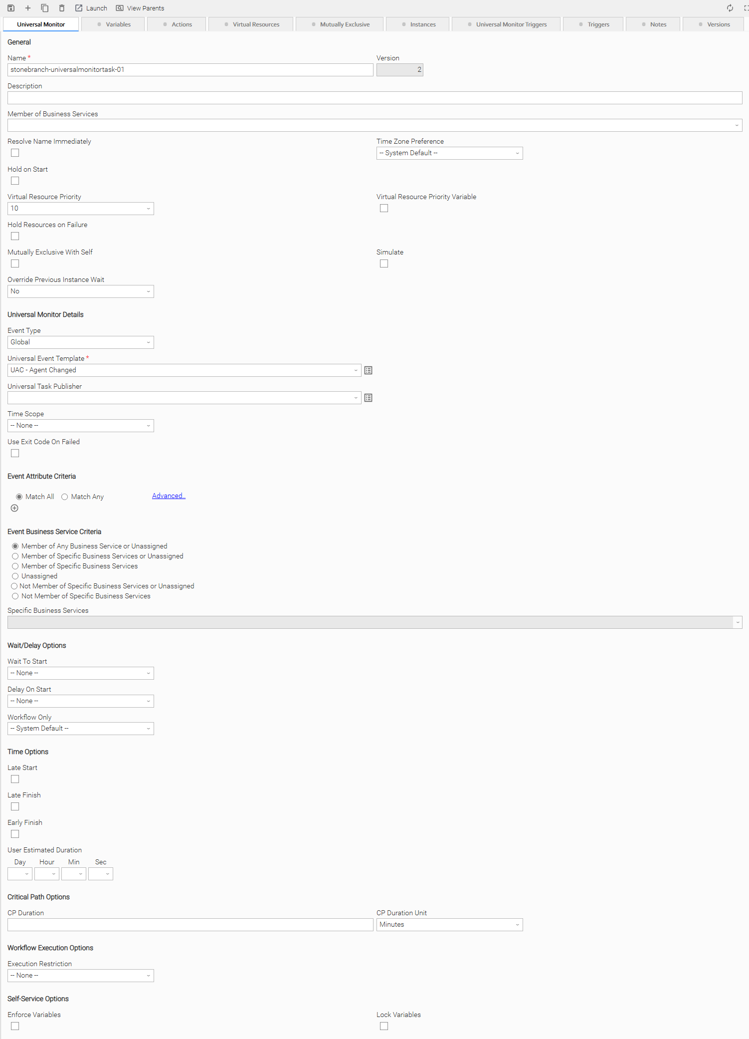 Universal Template | If Event Type is Local; Name of the Universal Template on which this Universal Monitor task is based. |