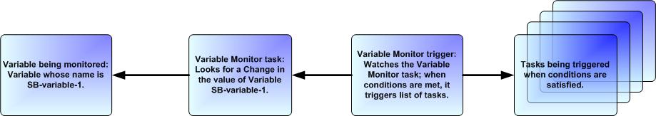 The Variable Monitor trigger allows you to trigger one or more tasks based on the conditions specified by a selected Variable Monitor task.