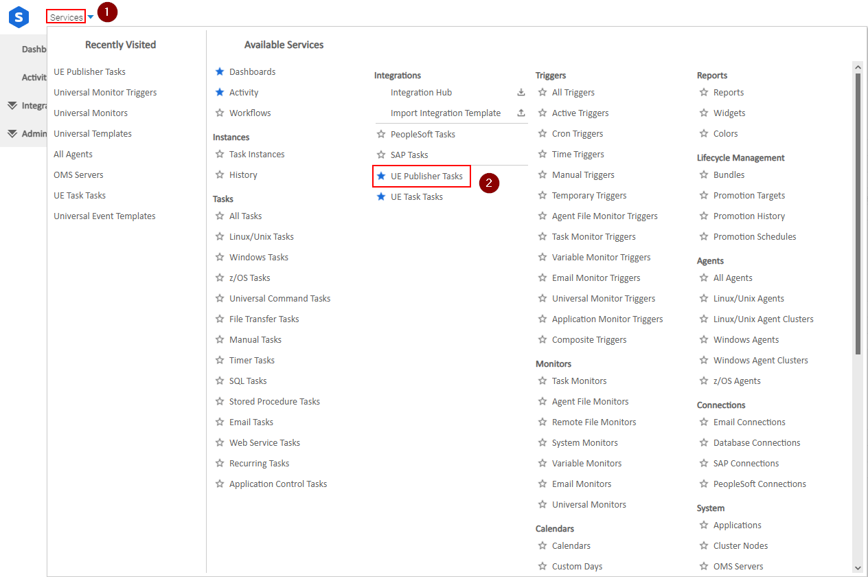 Then under the Services menu, click UE Publisher Tasks under the Integrations section: