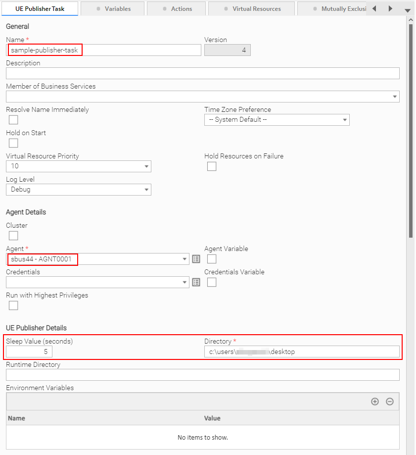 Step 5 - Create a task for the "UE Publisher" template