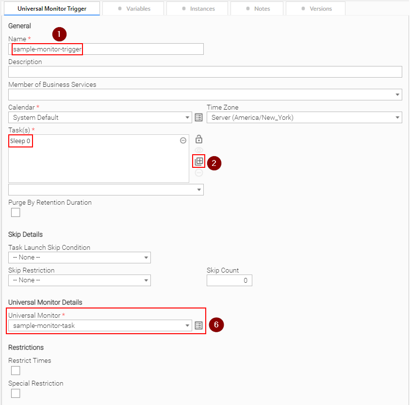 6. Create a Universal Monitor task and trigger.
