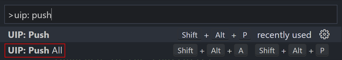 Recall that the UIP: Push command builds and uploads the Extension zip archive