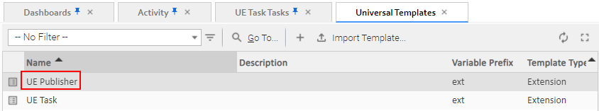 If successful, you should see the "UE Publisher" template in the "Universal Templates" list: