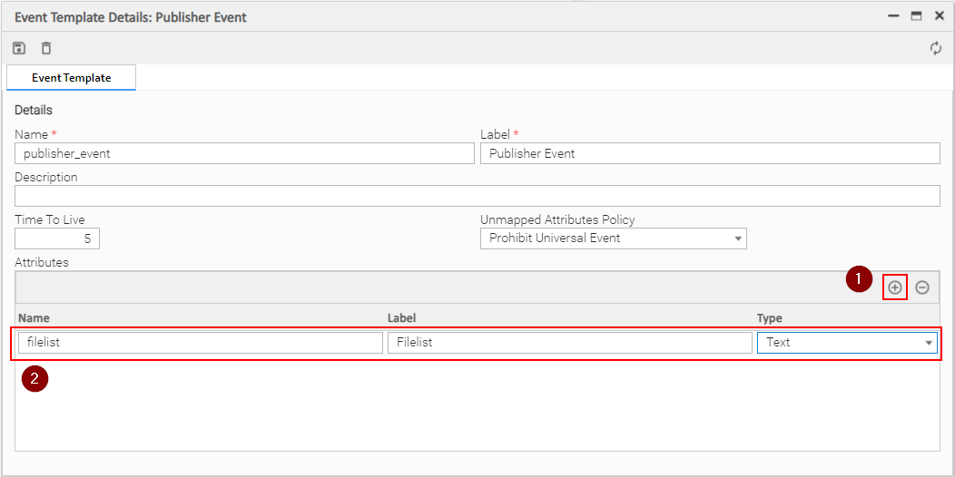 • Make sure the Event Type is set to Local since the ue_publisher Event Template is (locally) attached to the UE Publisher Universal Template