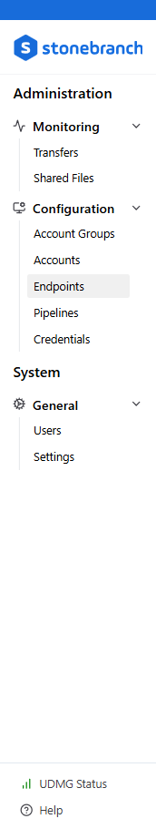 | Help | From here, you can easily find helpful links to the Console, UDMG Documentation, API Documentation, and Stonebranch Support. |